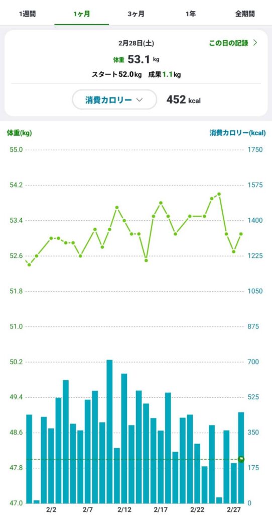 2月は目標消費カロリーを比較的達成している日が多くて、個人的には嬉しい限りです