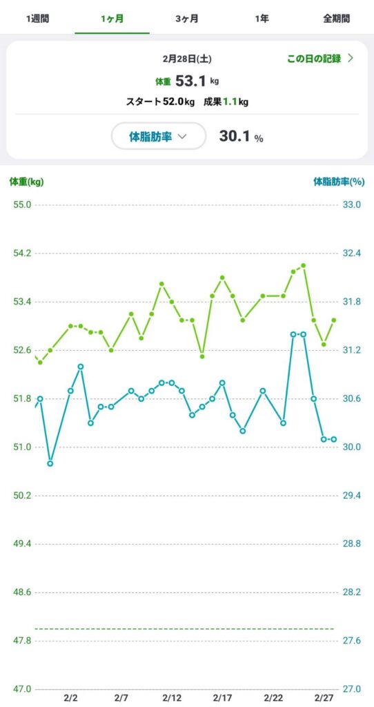 1月中は体調不良で動けていなかったので、筋トレをマイペースに開始したはずなのになぜか体重と体脂肪率が増加するという残念な結果になりました