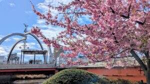 古利根公園橋は2月下旬から3月上旬まで河津桜がとても素敵な場所ですが、古利根きらめき通りのソメイヨシノが満開になっているころもスタート地点としてまずはここから眺める風景も素敵なんですよね