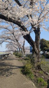 古利根きらめき通りは牛島方面に続いており、春には長い桜並木になって地元民がお花見散歩を楽しんでいる場所です